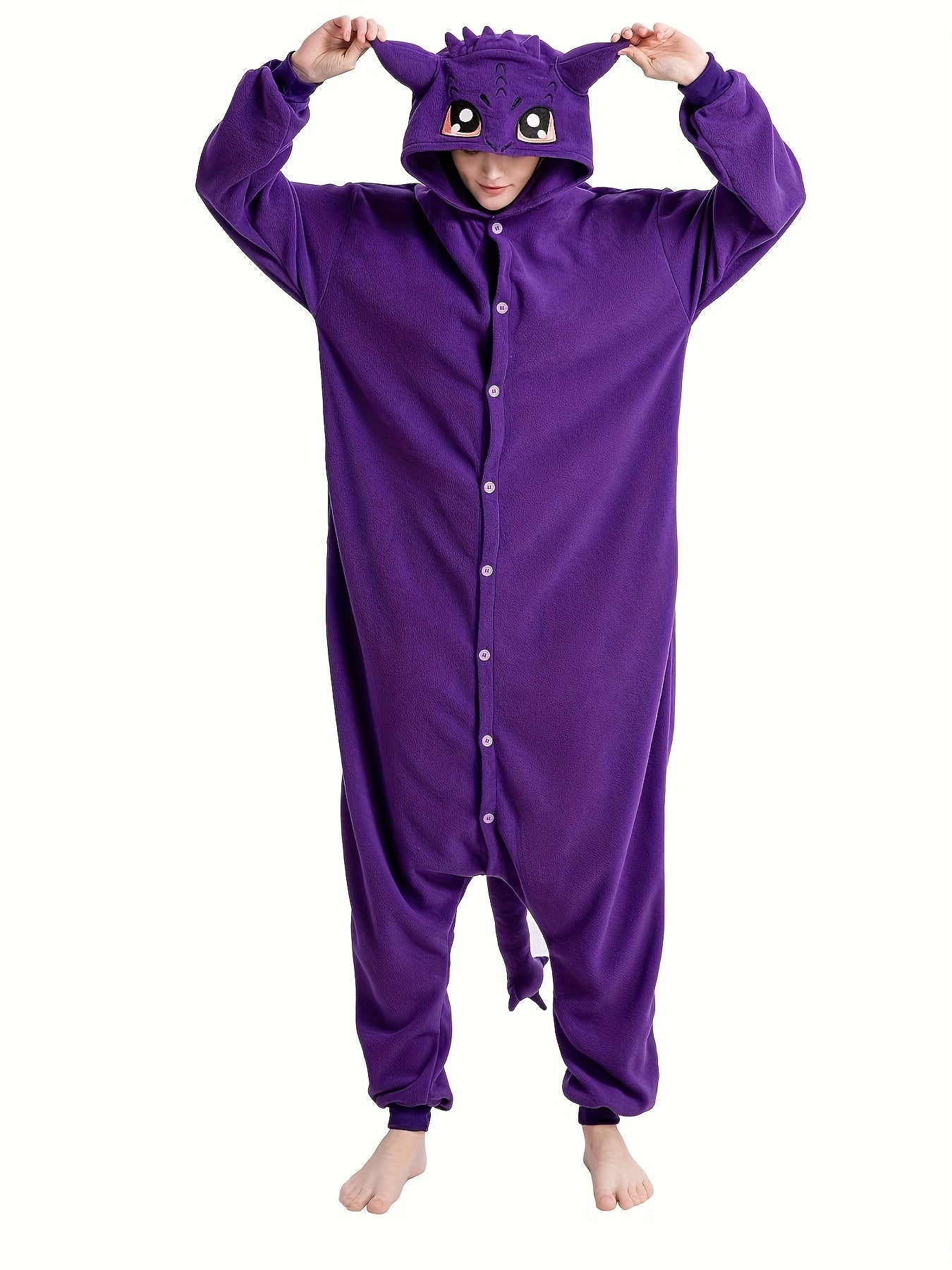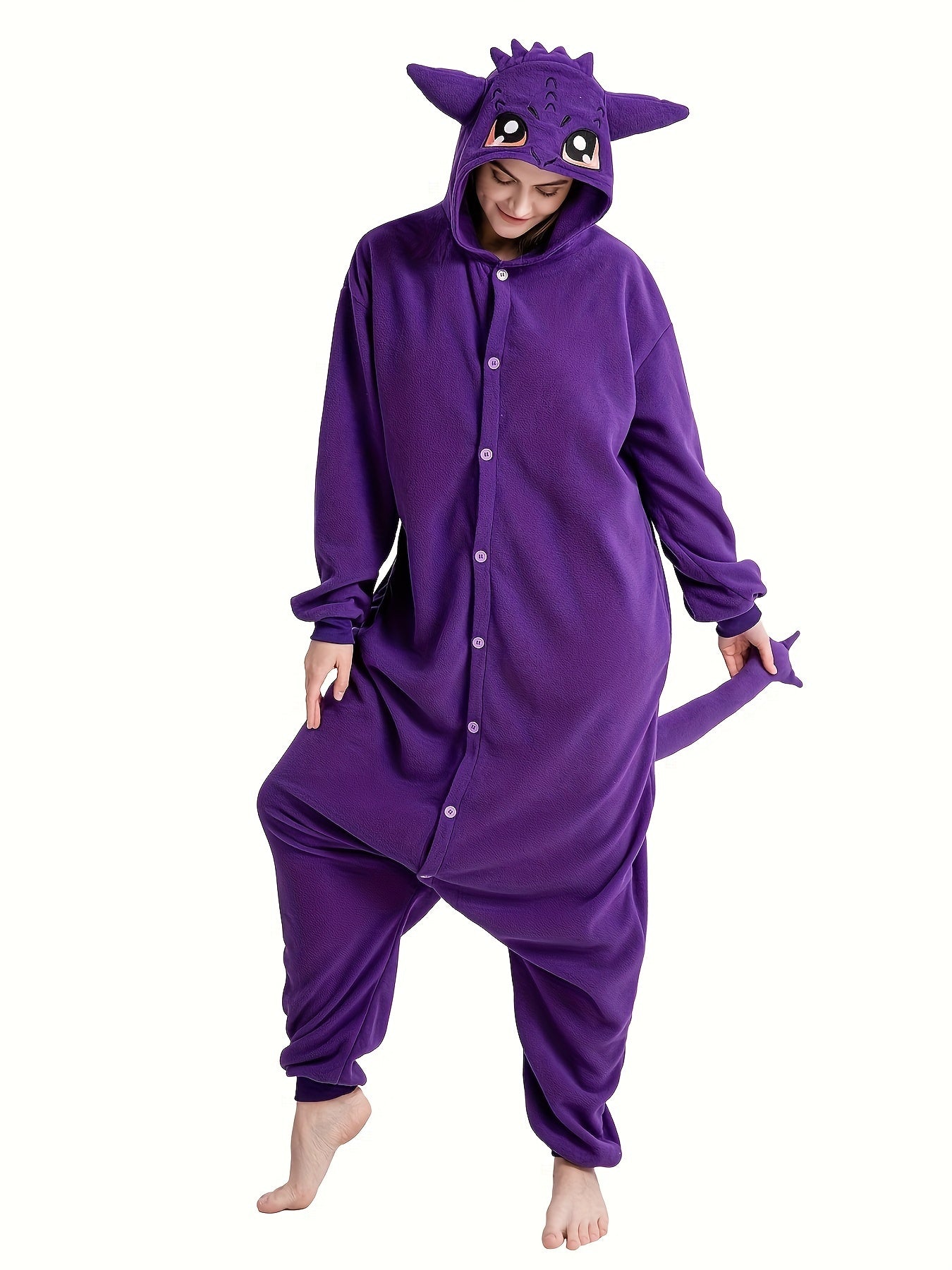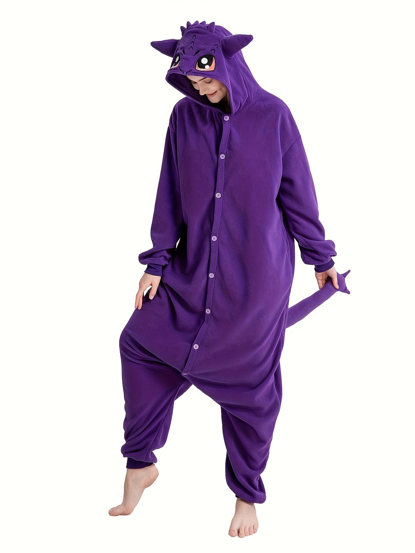 Cartoon Purple Dragon Fuzzy Hooded Kigurumi Onesie