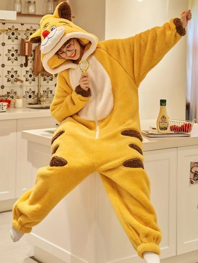 Cartoon Tiger Fuzzy Hooded Night Kigurumi Onesie
